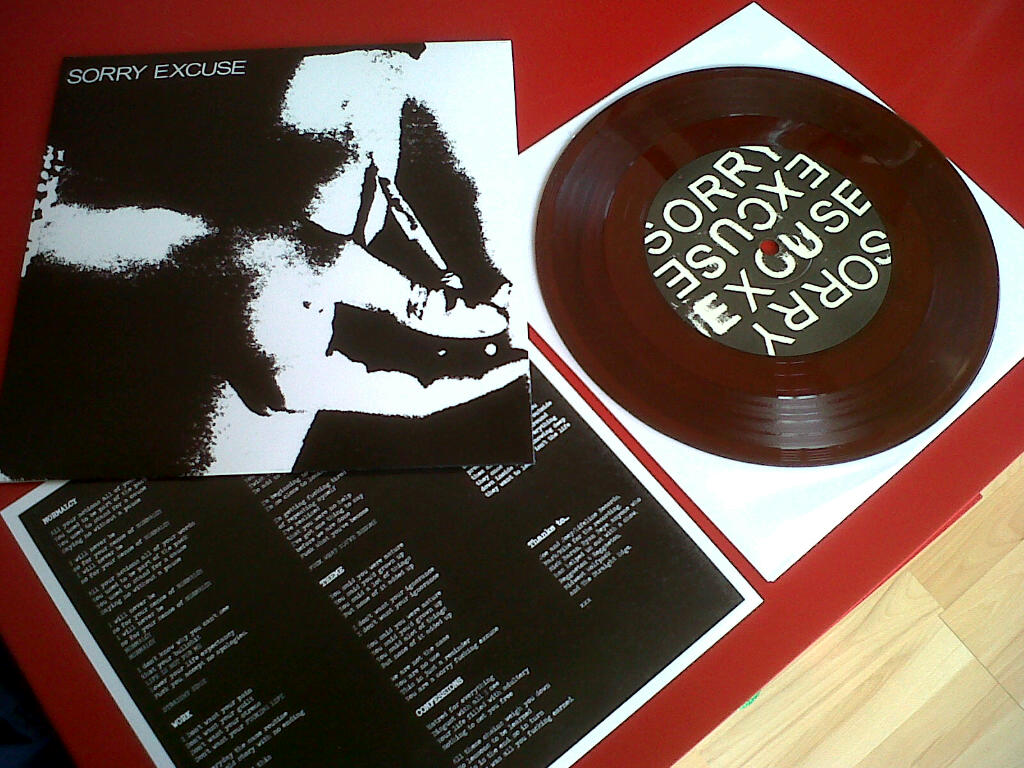J'avais bien aimé le premier ep de Sorry Excuse sortit sur Third Party , vous vous souvenez c'était ce disque avec pleins de X sur la pochette. Voici donc le second travail du groupe provenant du Kansas. Un 7'' plus rentre dedans encore , plus rapide et nettement plus violent au niveau du son et des copos que le premier. C'est un peu différent , j'ai moins accroché pour dire vrai , les morceaux sont trop uniformes et on s'ennuie un peu en l'écoutant. C'est sortit sur Lifeline 150 en brun et 350 en rouge.